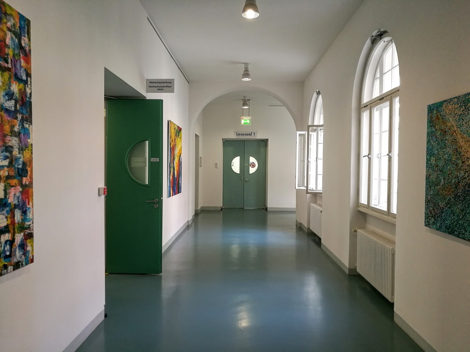 Es geht in den Lesesaal. Gutes WLAN, vier Steckdosen pro Arbeitsplatz und helle Umgebung. Die Bibliothek ist echt ein guter Ort, um produktiv zu sein.